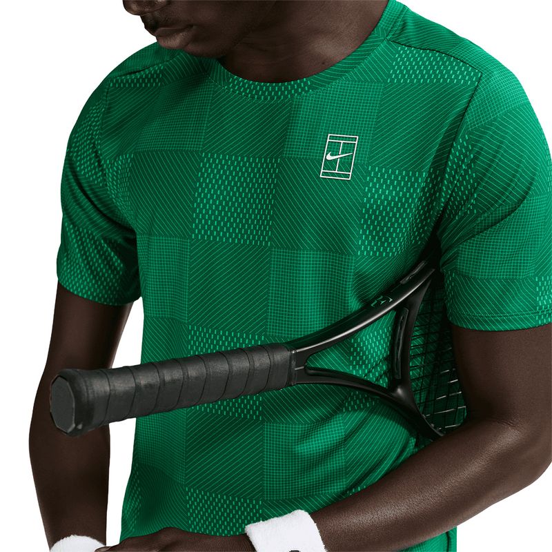 Keep it simple in Nike’s Advantage collection that features technical performance basics that are perfect for training or matches. The Nike Court Printed Advantage Crew features lightweight fabric, and a slightly asymmetrical hem, a silicone Nike Court logo, and a subtle checkered print. Made with Dri-Fit technology for optimal breathability and moisture-wicking.
