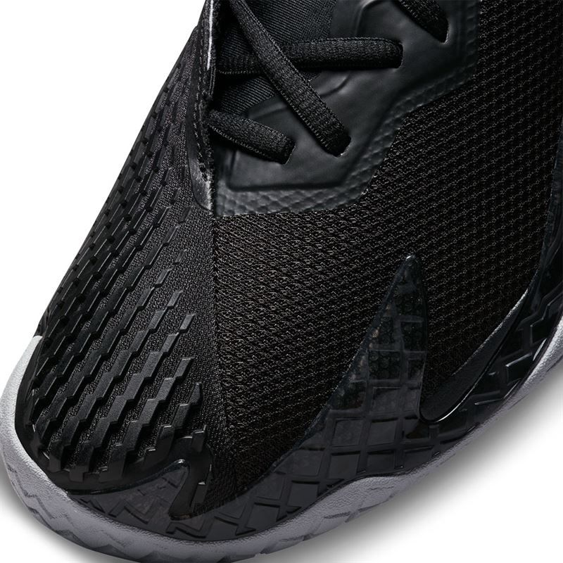 The next generation of Cage -- introducing the all-new Nike Court Air Zoom Vapor Cage 4 Rafa, featuring logos for Rafa Nadal. This new Cage 4 is the most durable Vapor to date. Innovated to last, Nike integrates durable rubber and tough plastic in high-wear areas. The medial lace eyestays are covered for added durability while sliding. The Vapor Cage 4 features responsive cushioning with Zoom Air unit beneath your forefoot creates a springy sensation with every step. The Vapor 4 has a very supportive fit thanks to unique lacing that wraps around your foot for support while you move. The shoe features a stiff frame on the lateral side which creates an extra stable feel during side-to-side movements.