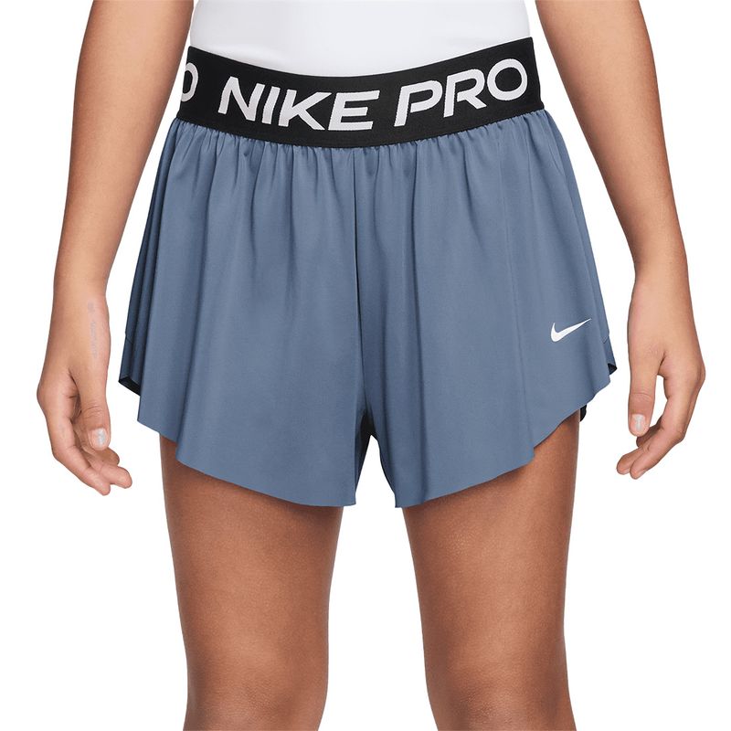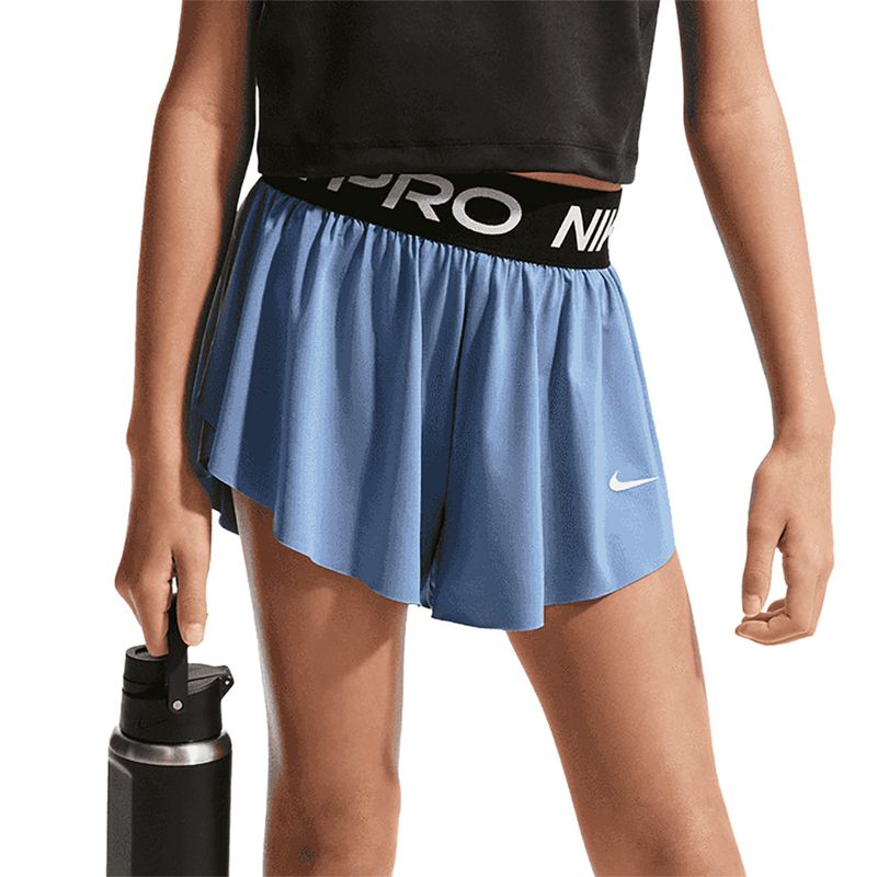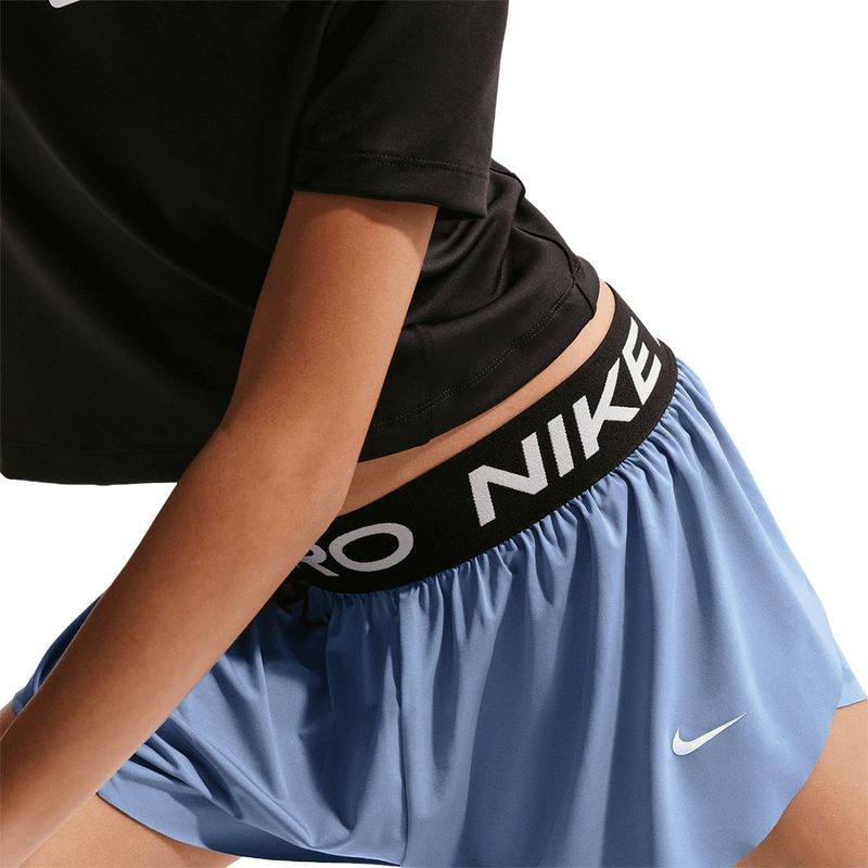 Keep it simple in Nike’s training collection that features performance basics that are perfect for everyday wear. The Nike Girls Pro Dri Fit Short features an elastic waistband, flouncy hem, and built-in ball shorts. Made with Dri-Fit Adv technology for optimal breathability and moisture wicking.