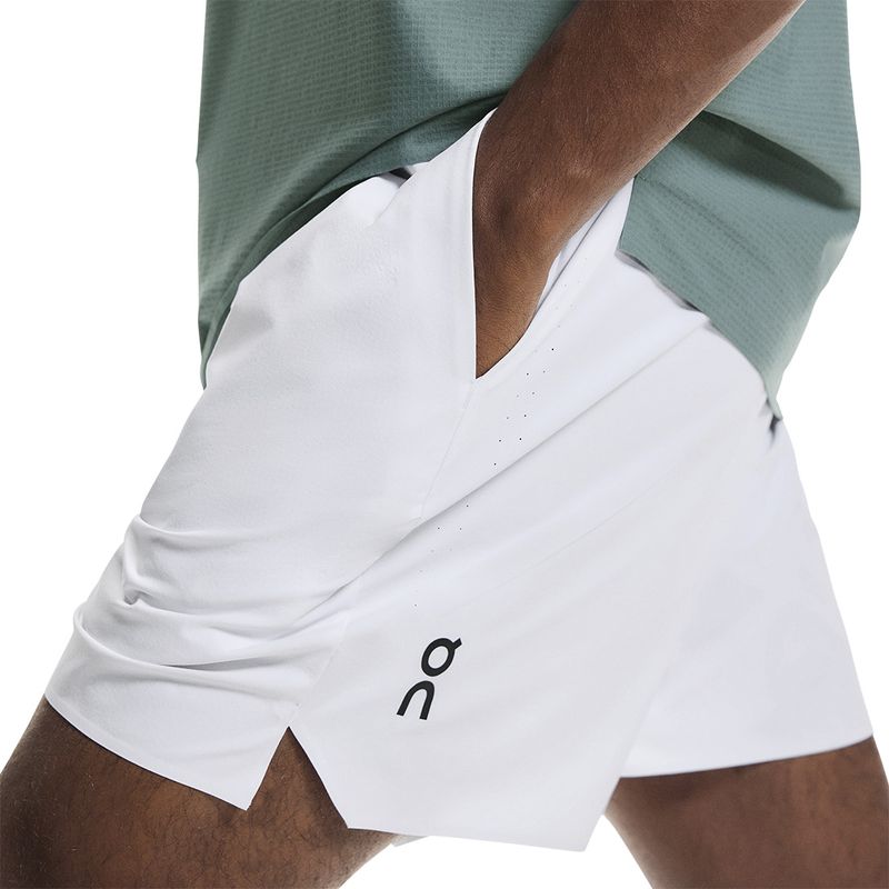 Keep it classy on the courts this spring in the sleek silhouettes of the On tennis collection. The On 5 inch Court Short features a lightweight fabric and an adjustable waistband with pockets. Made with recycled materials.