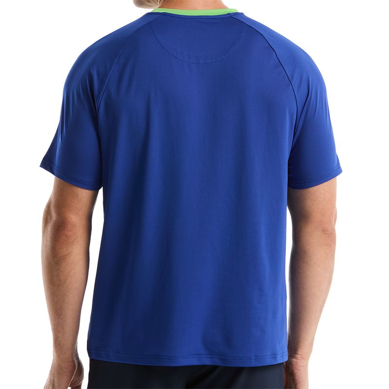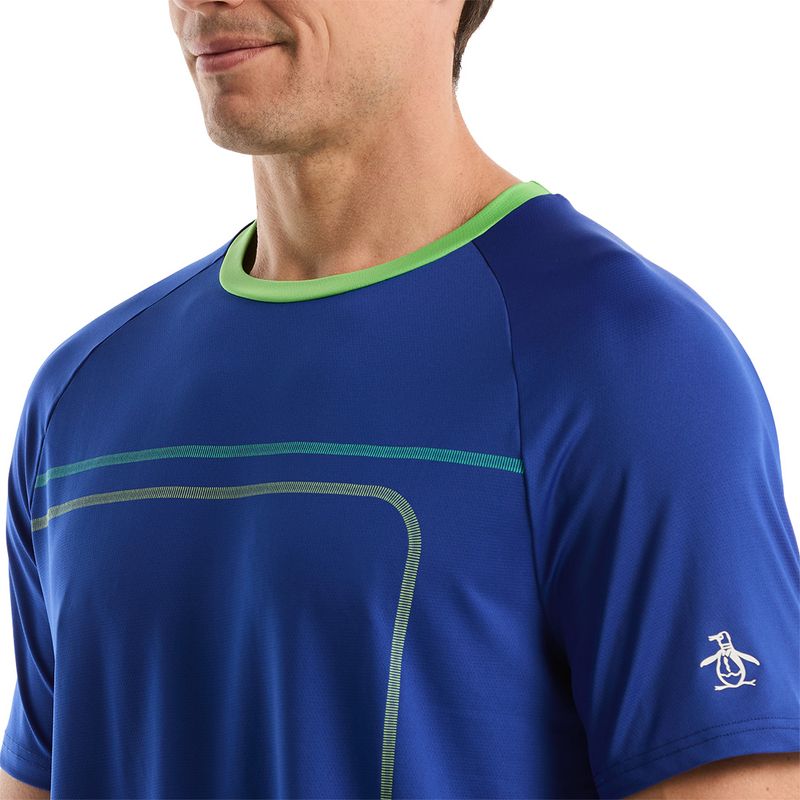 Penguin’s Summer 2026 Collection features classic silhouettes and fun prints that will keep you looking and feeling your best on the courts all season long. The Linear Color Block Crew features a lightweight, ventilated material, a crew neckline, and a graphic print. Made with recycled performance materials.