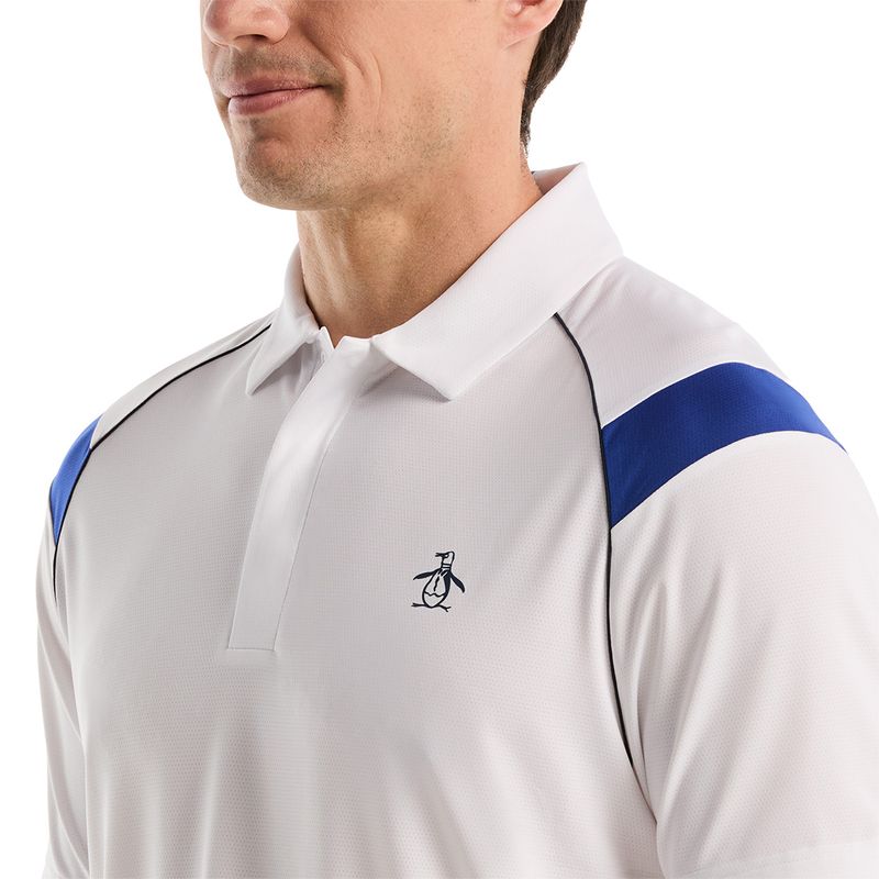Penguin’s Summer 2026 Collection features classic silhouettes and fun prints that will keep you looking and feeling your best on the courts all season long. The Raglan Stripe Polo features a lightweight, ventilated material, 3-button snap closure, and color block details. Made with recycled performance materials.