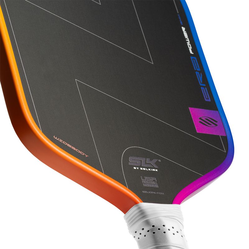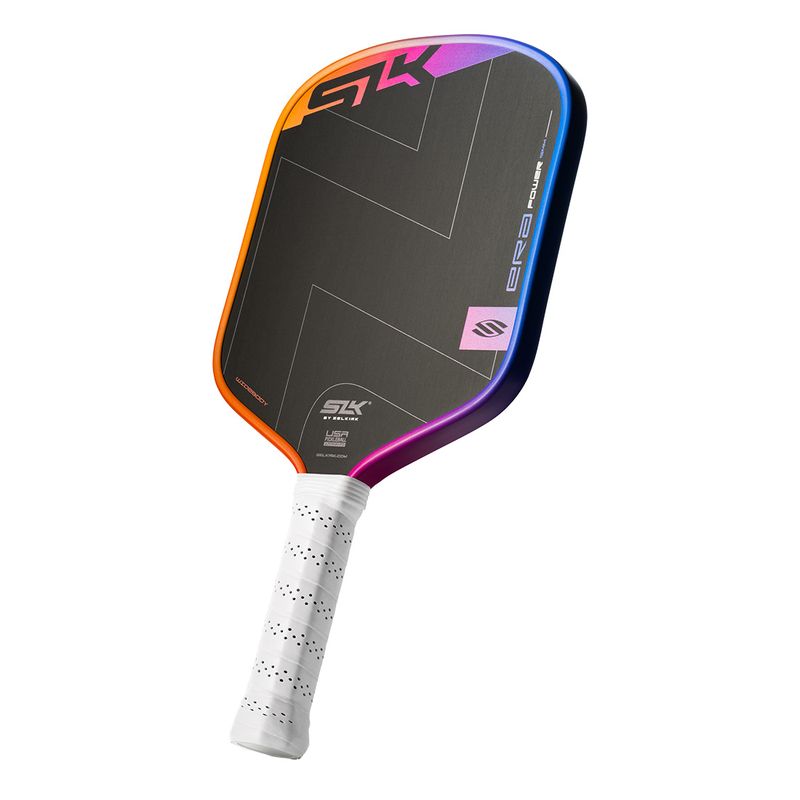 Limited edition Sunset color edition to the SLK Era Power. Bring finesse and ferocity to every point with the SLK ERA Power Widebody. Engineered for pace-driven players, it features Selkirk’s Dynamic Fusion Core for high-powered performance and a massive, consistent sweet spot. The widebody design provides extra forgiveness and improved feel across the face, while the octagonal handle and Raw Spin Technology deliver greater precision and spin. It’s power, polished — for players who play with purpose.