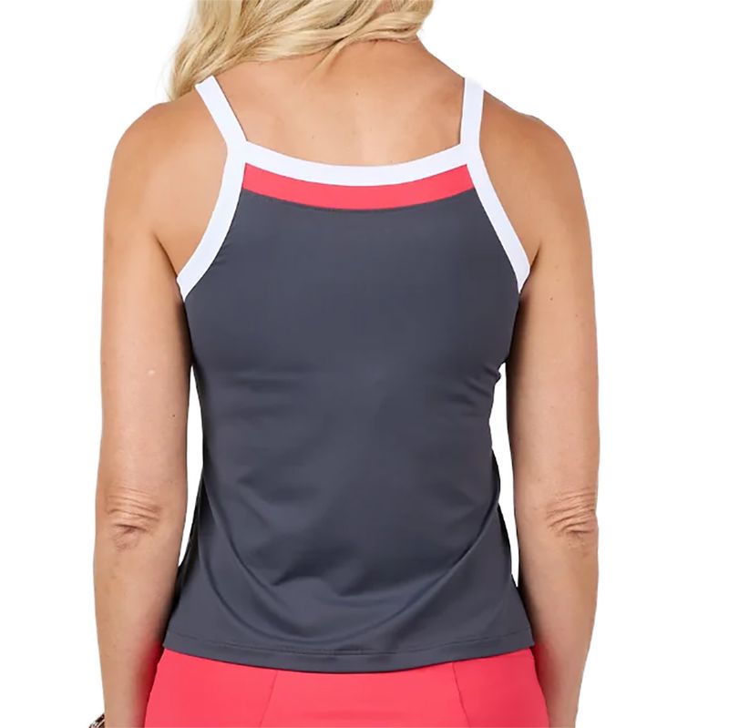 Dominate the courts this spring in the sharp red tones of the Sofibella Berry Fusion Collection. The Berry Fusion Tank Top features soft rib inserts and contrast-colored panels. Made with quick-drying, antibacterial, and UV protection materials.