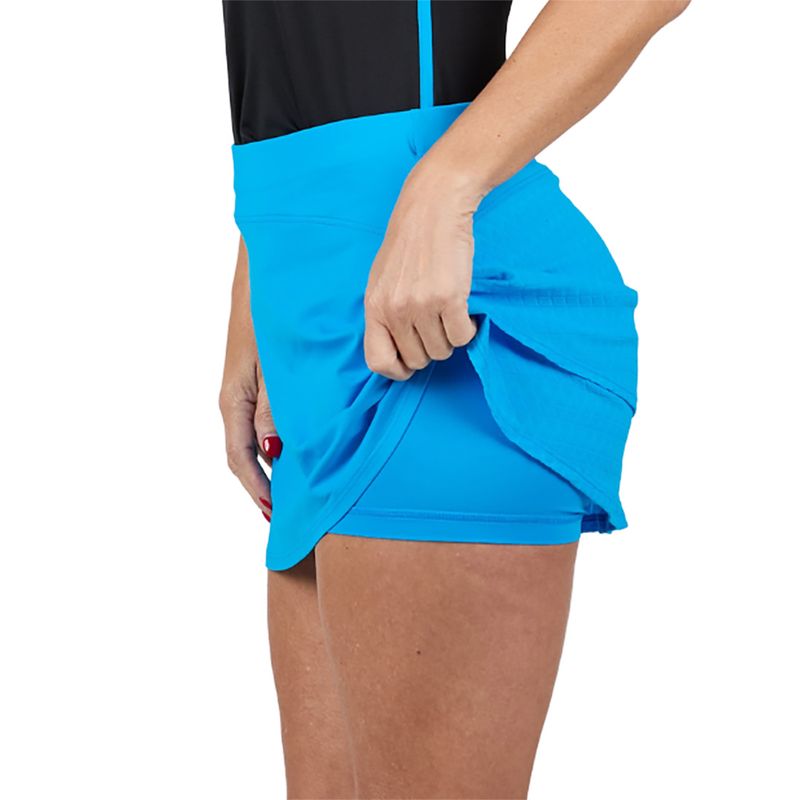 Keep it cool on the courts in the soft blues of the Sofibella Electric Blue Collection. The Electric Blue 13 inch Skirt features jacquard inserts, a double-flounce hem, and built-in ball shorts. Made with quick-drying, antibacterial, and UV protection materials.