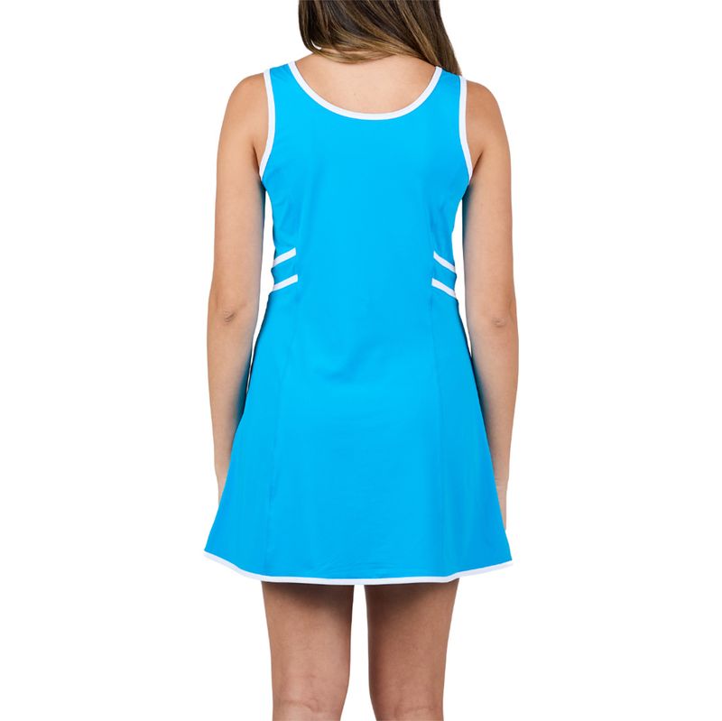 Keep it cool on the courts in the soft blues of the Sofibella Electric Blue Collection. The Electric Blue Dress features contrast binding and a flouncy hem. Made with quick-drying, antibacterial, and UV protection materials.
