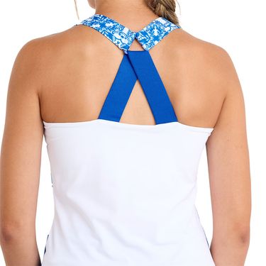 Keep it cool on the courts this spring in the tile prints and blue tones of the Sofibella Miss Santorini Spring 2025 Collection. The Miss Santorini Tank Top features a triangle buckle detail, color blocking, and a built-in shelf bra. Made with quick-drying, antibacterial, and UV protection materials.