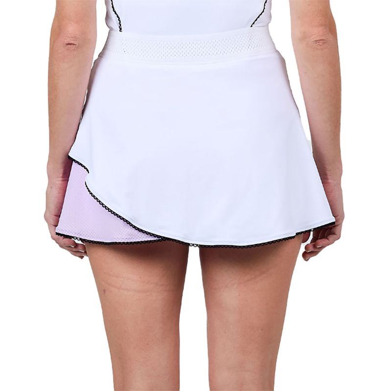 Strut your style on the courts in the cool pinks and purples of the Sofibella Mystic Sunrise Collection. The Mystic Sunrise 14 inch Skirt features magic mesh panels, scalloped trim details, and built-in ball shorts. Made with quick-drying, antibacterial, and UV protection materials.