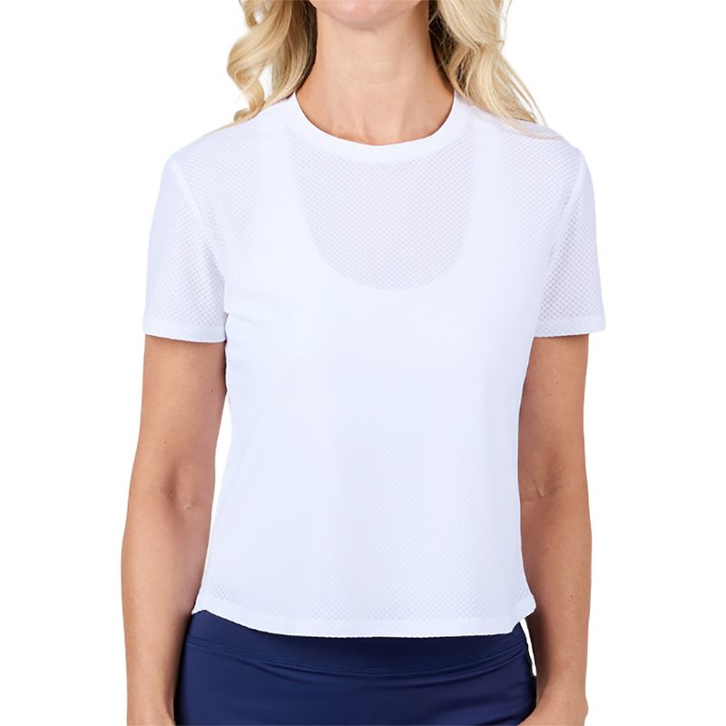 Mix and match your tennis outfit with the great everyday pieces from the Sofibella Staples Collection. The Staples Short Sleeve Top features a relaxed fit, magic mesh fabric, and a curved hem.