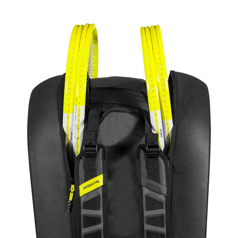 The Tecnifibre Reform L Tennis Bag in Black is a full-featured large bag designed to handle all the equipment demands of the serious club or tournament player. It accommodates multiple racquets along with shoes, clothing, and accessories across multiple organized compartments. Durable construction and comfortable carrying options make it a reliable companion for every match day.