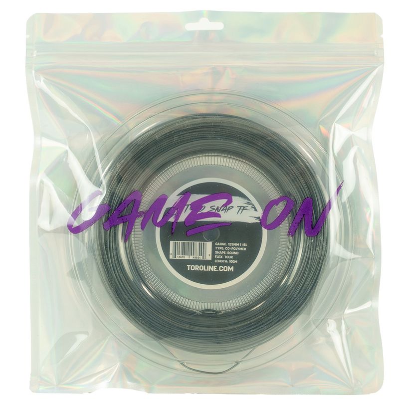 Toroline O-Toro Snap Tour Flex offers a stiffer evolution of the original SNAP, delivering enhanced control, stability, and improved tension maintenance. Its round, ultra-slick profile promotes maximum snapback and consistent string movement for reliable spin and precision. Ideal for players seeking a firmer, more controlled response without sacrificing feel. This 1.25mm (16L) reel provides enough string for approximately 8 racquets.