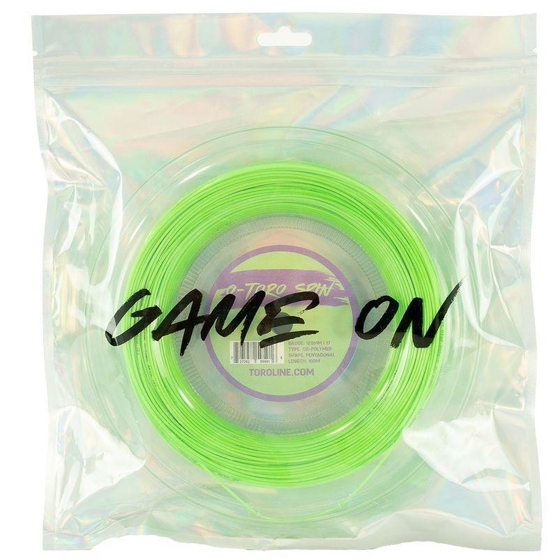O-Toro Spin is a more aggressive evolution of Toroline's best-selling string, developed with former Top 25 ATP pro Steve Johnson to maximize spin and net clearance. Its pentagonal shape increases ball bite and launch angle, making it ideal for baseline players who hit heavy, high-kicking shots. Despite its added spin potential, it maintains the same comfortable flex and elasticity as the original O-TORO for a balanced, responsive feel. This 1.23mm (17g) reel provides enough string for approximately 8 racquets, delivering consistent, spin-focused performance.