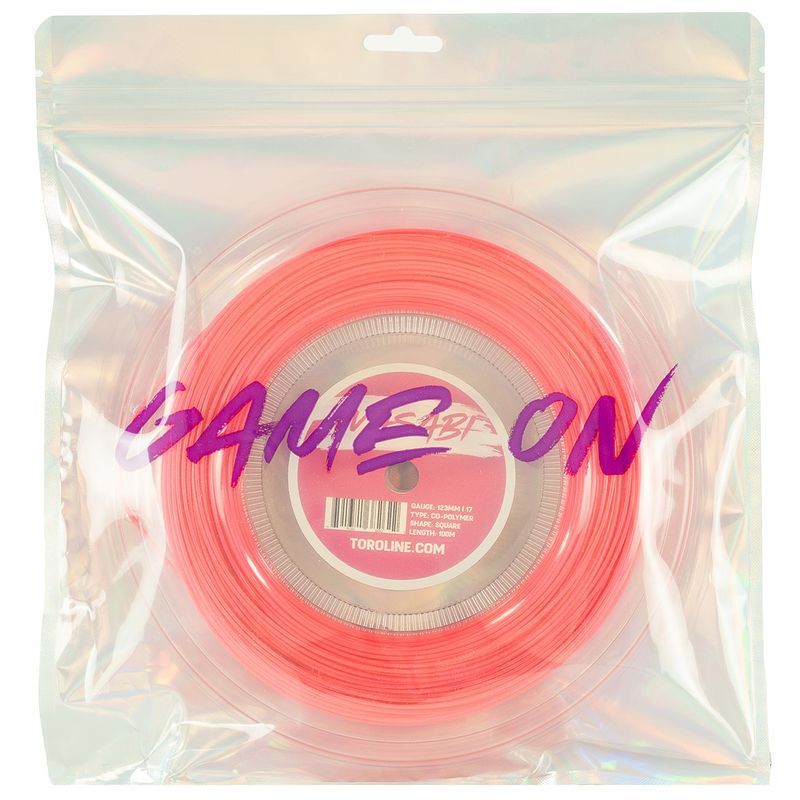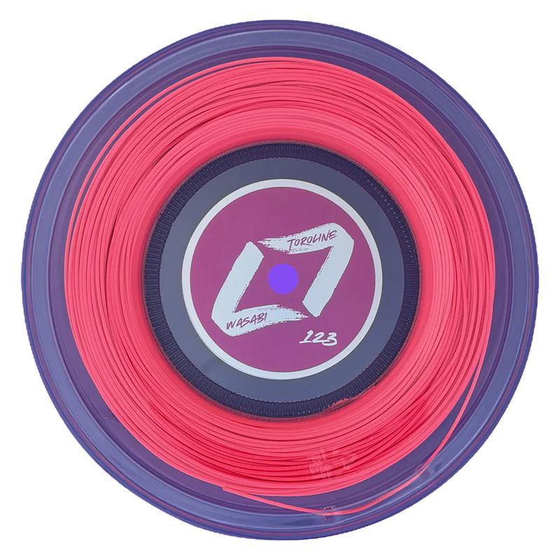 Toroline Wasabi Neon Pink is a four-sided co-poly string engineered for players who want to generate heavy spin and play aggressively from anywhere on the court. Its square profile grips the ball for maximum rotation, while the ultra-slick coating enhances snapback for added spin and a more dynamic response. Designed with an elastic feel, it offers a slightly softer, more comfortable experience compared to traditional firm polys. This 1.23mm (17g) reel provides enough string for approximately 8 racquets, delivering consistent spin and performance.