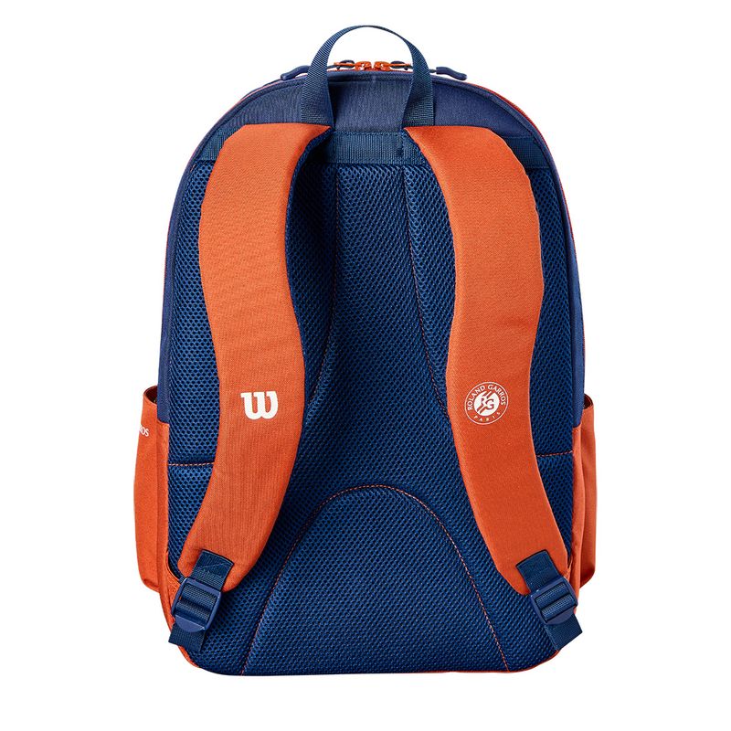 Carry the spirit of Stade Roland Garros wherever you play with the Wilson 2026 Roland Garros Team Backpack. Featuring the classic clay orange and deep navy colorway that channels the energy of Paris in May, this backpack is adorned with the Wilson Sporting Goods Co. script logo and the official Roland Garros insignia. A dedicated padded racquet compartment holds up to 2 frames, while multiple zippered pockets provide organized storage for accessories, apparel, and daily essentials. Padded, adjustable shoulder straps and a breathable back panel ensure comfortable carry through long match days and travel. Part of the exclusive Wilson x Roland Garros 2026 Team Collection, this backpack is the perfect everyday companion for clay-court season and beyond.