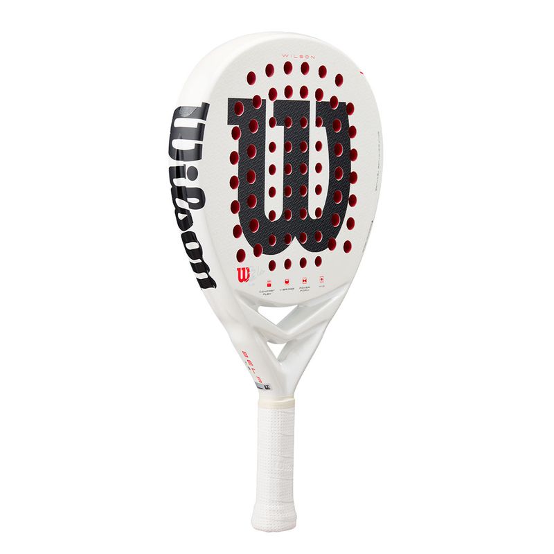 The Wilson Bela LS V3 carries the signature style of “The Boss” with an aggressive design and performance-driven construction built for confident attacking play. Lighter and more maneuverable than the standard model, it pairs a soft core with a responsive feel, making it ideal for offensive players—especially women—seeking power with added forgiveness. The 24K Carbon Face and C2 Tubular Construction deliver durability, dynamic control, and versatile all-around performance. Technologies like the V-Bridge and Stability Channel enhance frame rigidity for improved precision, while the Duo Grid hole pattern optimizes power on smashes and control on volleys. Finished with SpinEffect texture for maximum ball grip and spin potential, the Bela LS V3 offers explosive performance with the comfort to compete match after match.