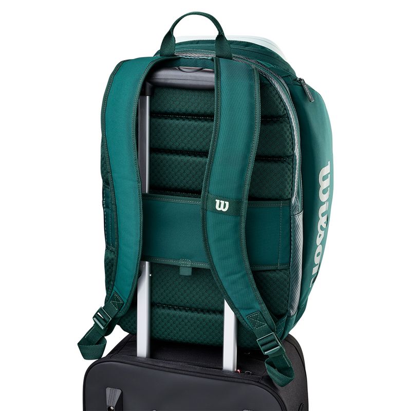 Built for the player who moves between court, commute, and court again without missing a beat, the Wilson Blade V10 Super Tour Tennis Backpack packs in everything you need. A padded main compartment with locking zippers fits up to 2 racquets, while a dedicated padded laptop/tablet sleeve with accessory dividers keeps your tech organized. A new bottom zipper shoe garage keeps dirty shoes isolated from the rest of your gear, and a Thermo side zippered compartment maintains temperature control for drinks or snacks. A new travel strap integrates seamlessly with carry-on luggage, and redesigned foam and mesh back padding with ergonomic shoulder straps make it genuinely comfortable for long hauls.
