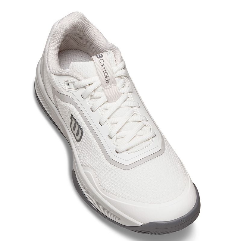 Play with confidence and comfort in the Wilson CourtGlide. Built on Wilson’s trusted Rush platform, it provides an instant, glove-like fit with lightweight breathability and stability. The R-DST midsole offers responsive cushioning and shock absorption for all-day comfort. A versatile herringbone outsole gives you reliable grip and natural movement on hard, clay, and hybrid courts.