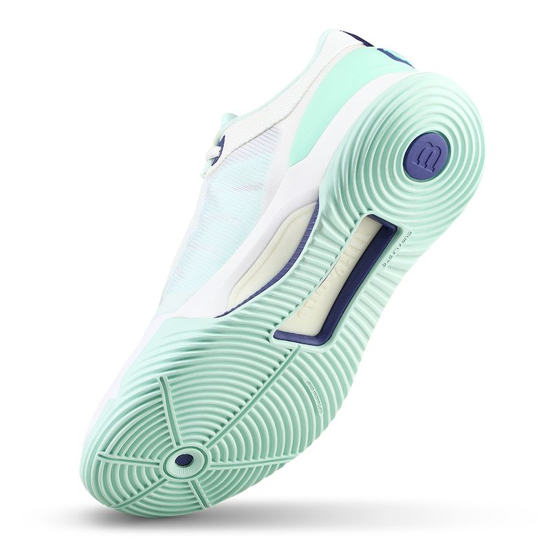 Built for speed, stability, and comfort, the Wilson Intrigue Tour Padel shoe is designed specifically for the female foot, delivering the performance serious players demand. SwiftStep cushioning features a drop-in Pebax foam design for a responsive, energized feel, while outer foam layers provide essential lateral support. The Ultrashield engineered mesh keeps the shoe light, breathable, and durable for all-day comfort on the court. With Footframe Support technology molding to your foot's unique contours, you'll enjoy a locked-in fit that adapts to every move, helping you stay agile and confident in every rally.