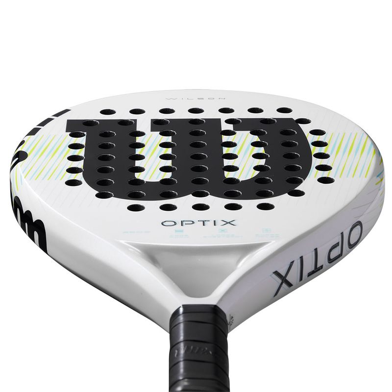 The Wilson Optix White is designed to give beginners an affordable, confidence-building start in padel. Lightweight, soft, and easy to maneuver, it’s ideal for players with little to no racket sport experience and can also suit teenagers learning the game. Its round shape enhances control and forgiveness, while the 265 mm balance provides stability for smoother handling and improved shot precision. Weighing approximately 360 grams, it delivers a comfortable swing with manageable power. Built with a durable fiberglass frame in a clean white design, the Optix offers the perfect blend of control, comfort, and durability to support steady progression on court.
