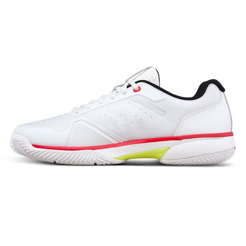 The Men’s Rush Lite 5 Clay delivers the same explosive speed and responsive comfort, now optimized for clay court performance. EndoFit midfoot support and a breathable single-layer engineered mesh upper create a secure yet adaptive fit for fast, confident movement. A supercritical drop-in EVA sockliner paired with R-DST+ cushioning absorbs impact while maintaining a lively, responsive ride through long rallies. The TPU Speed Plate enhances propulsion, while the clay-specific herringbone outsole provides optimal grip and controlled sliding on red dirt. Finished with a medial rubber drag pad for added durability, it’s built for aggressive movement and all-match comfort on clay.