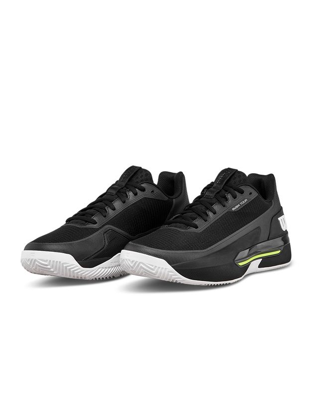The Wilson Rush Tour 5 Clay is engineered for aggressive movers who demand speed, stability, and durability on clay courts. A locked-in fit works with the Dual Axis Speed Carbon chassis and EndoFit midfoot support to deliver confident lateral control for hard cuts and explosive direction changes. The responsive super foam midsole provides quick acceleration and energized recovery, while drop-in construction enhances connection to the court. A breathable Gammaweave mesh upper balances airflow with long-lasting durability through extended rallies. Finished with a clay-specific Duralast outsole, this shoe delivers dependable grip and sliding control built for relentless clay-court play.