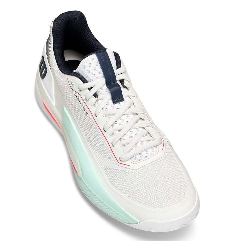 The Wilson Rush Tour 5 is built for players who attack the court with speed, power, and confidence. Designed to lock your foot in place, it delivers explosive acceleration and lateral stability thanks to the Dual Axis Speed Carbon chassis working alongside EndoFit midfoot support. A responsive super foam midsole provides instant pop for faster first steps and quick recoveries, while the drop-in construction creates a connected, performance-driven feel. The lightweight Gammaweave mesh upper maintains breathable comfort without sacrificing durability during long matches. Finished with a high-abrasion Duralast outsole, the Rush Tour 5 offers dependable traction and resilience for aggressive all-court play.
